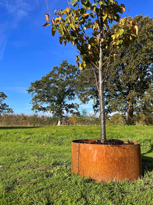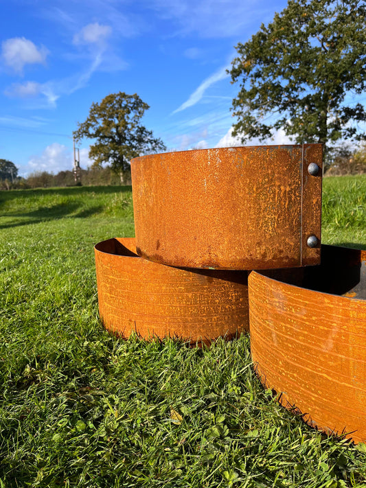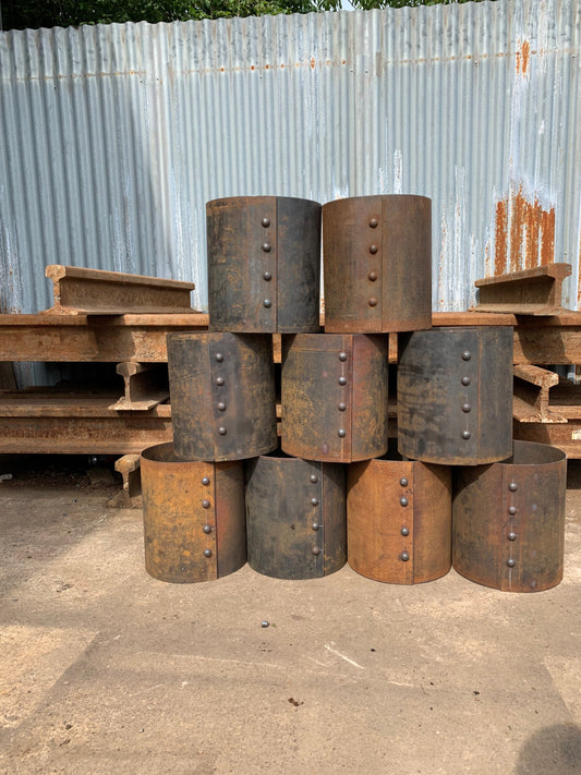 Reclaimed railway Corten steel plant pot with solid steel rivets